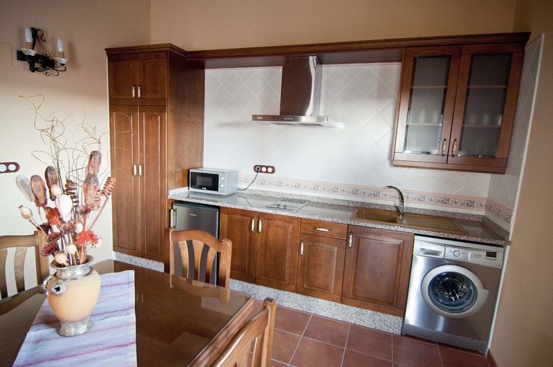 ![]() | Descripción: Un apartamento tranquilo y coqueto desde el que conocer la comarca, disfrutar de sus vacaciones y fines de semana, donde descansar y relajarse después de pasar un día disfrutando de nuestros alrededores Consta de comedor- cocina: equipado de mobiliario, utensilios y electrodomésticos necesarios: lavadora, microondas, vitrocerámica, agua caliente, campana extractora, nevera, plancha, tostadora, batidora y televisión LCD de 32”. Un dormitorio: que cuenta con cama de matrimonio 150 x 190 cm. Puede albergar hasta 3 personas, 2 acomodadas en la habitación principal y 1 en el sofá-cama del salón ,con un pequeño coste adicional. Incluyen ropa de cama, toallas y detalle de acogida para una estancia mínima de dos noches. Baño: completo y secador de pelo. |