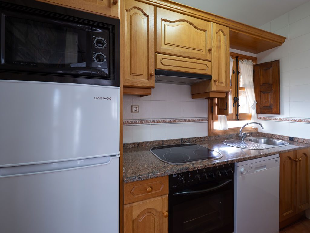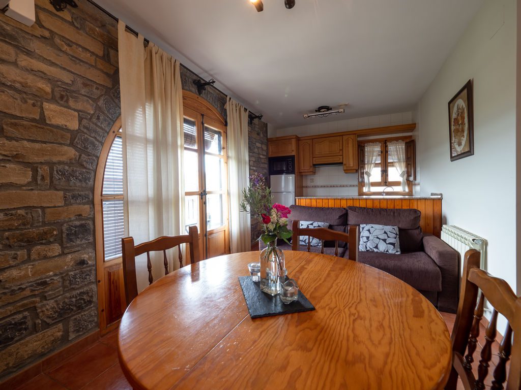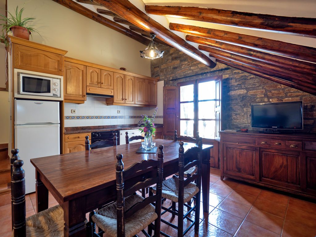 ![]() | Apartamento El Mirador El apartamento El Mirador tiene capacidad para 4 personas. Es un dúplex con la segunda planta abuhardillada. En la primera hay un amplio salón con TV, chimenea y cocina comedor. La cocina está totalmente equipada y dispone de lavavajillas. Hay un dormitorio con 2 camas y un baño amplio con bañera. En la segunda planta, un dormitorio de matrimonio y baño con ducha. Tiene una amplia terraza con mesa y sillas para poder comer fuera incluso si llueve. |