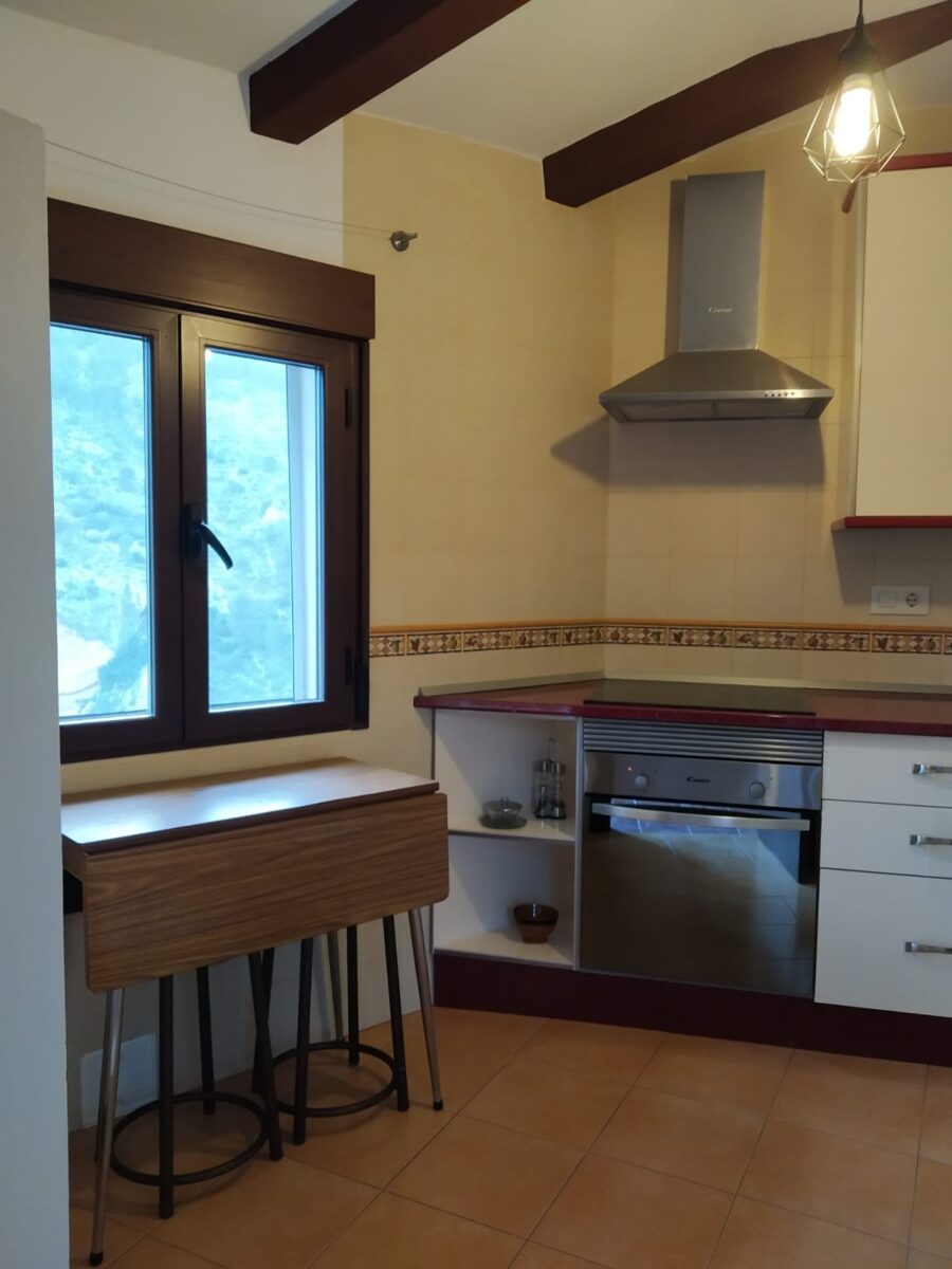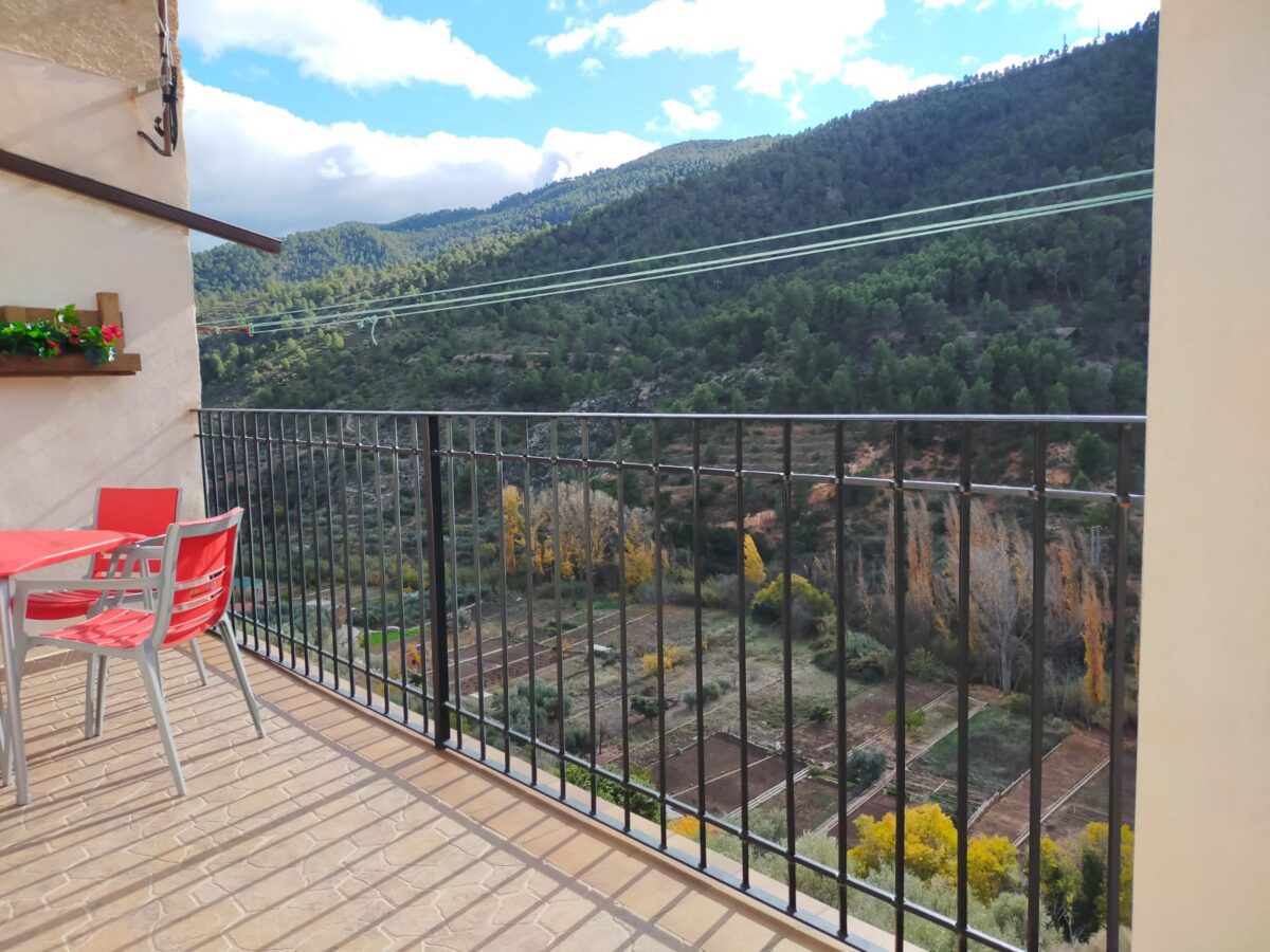 Casa Rural Elena está preparada para un máximo de 5 personas, dividida en dos plantas, en la planta baja encontramos el salón, la cocina, una habitación con cama de matrimonio, un cuarto de baño y lo mejor de esta casita, una terraza con vistas a la montaña y al río. En la segunda planta tenemos una habitación con dos camas individuales, una sala de estar con un sofá cama y un cuarto de baño. Todas las estancias poseen aire acondicionado con bomba de calor.