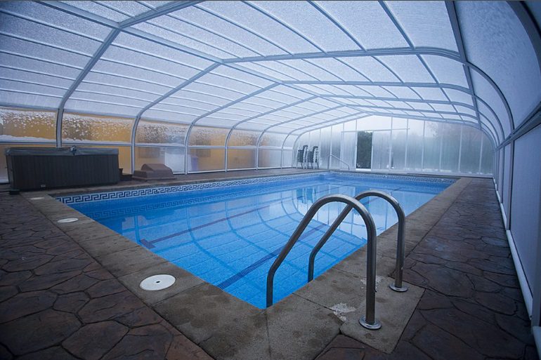 La piscina cubierta esta ubicada en otra parcela, en el mismo pueblo y es de uso común privado para las casas rurales. Abierta desde Mayo hasta Octubre.