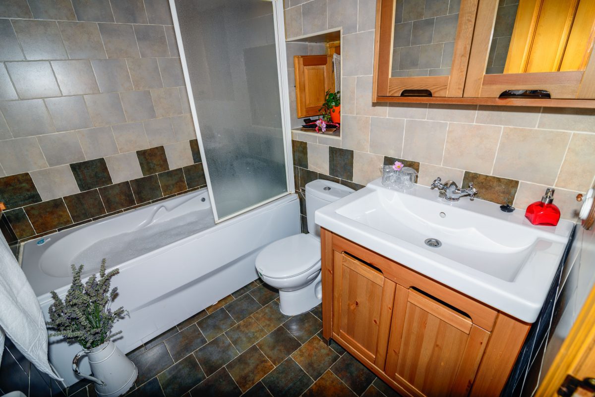 La vivienda dispone de dos baños completos; uno de ellos con bañera de hidromasaje, secador de pelo y espejo de aumento.