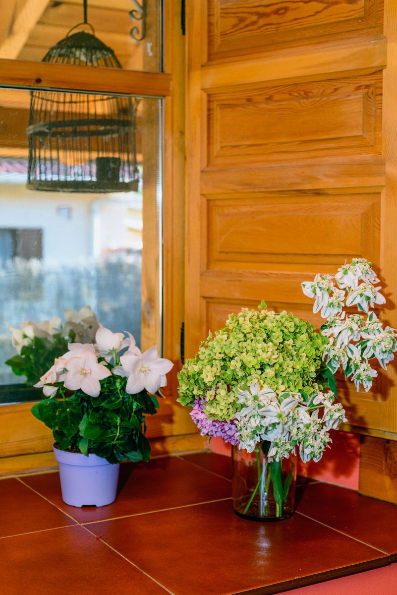 El patio, que da acceso a la vivienda – tiene un amplio porche de madera, barbacoa, mobiliario de jardín y macetas con plantas autóctonas de la zona.
