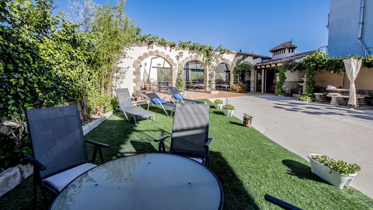 Dispone de jardín-terraza, equipado con mesas y sillas, para descanso de los visitantes. En el terreno que rodea la casa hay una barbacoa, y un parking cubierto