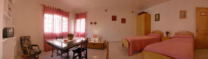 Casa Rural que consta en dos alojamientos de 6 amplias y acogedoras habitaciones cada uno. Algunas de ellas albergan baño propio y hay 3 más compartidos en toda la casa, además de calefacción y televisión propia. Cada habitación está decorada artesanalmente con motivos florales, así encontraremos estancias como: La Rosa, Los Girasoles, El Pensamiento, etc…