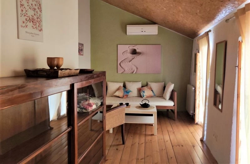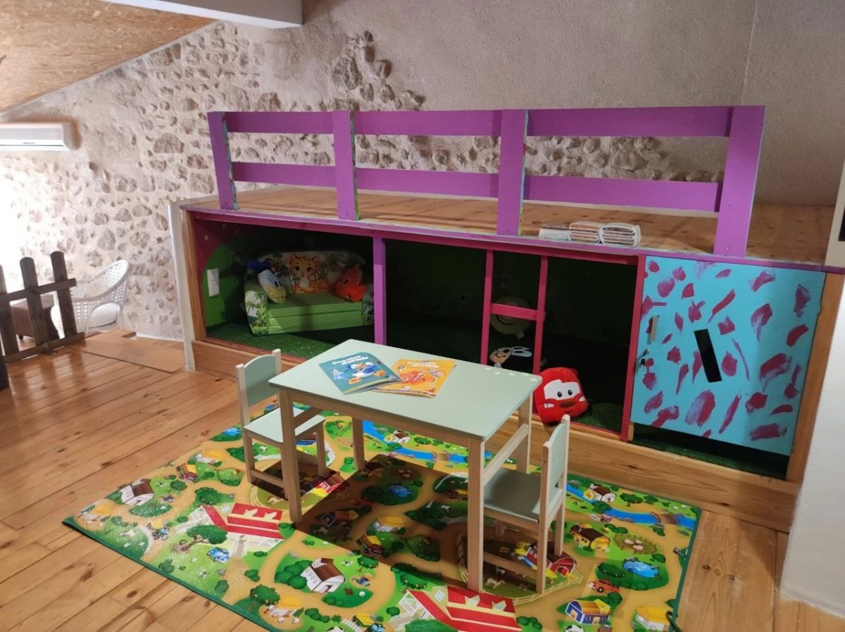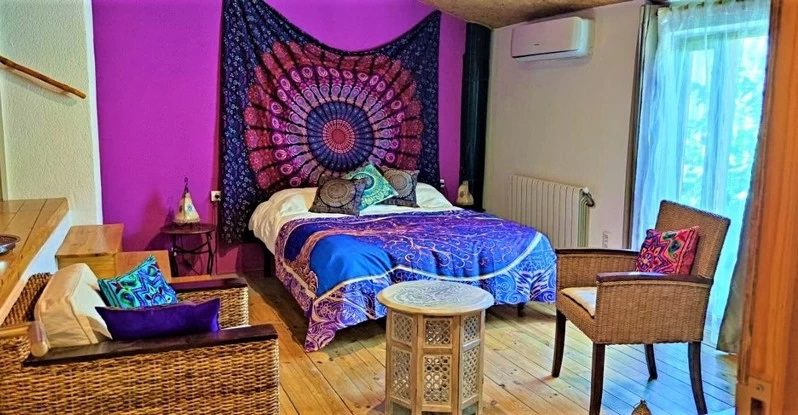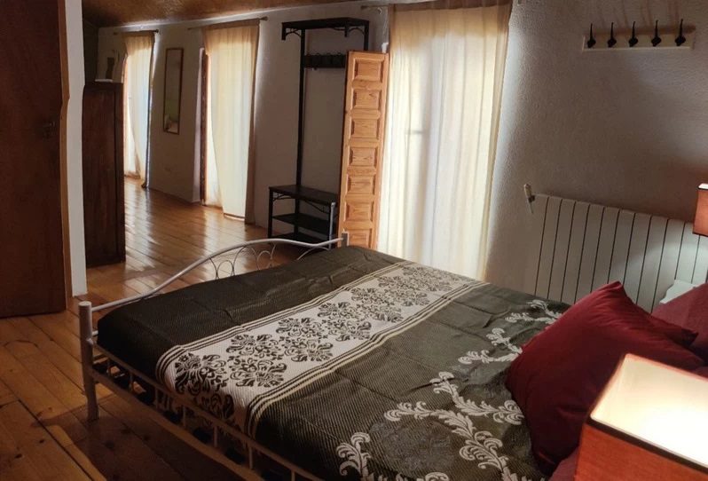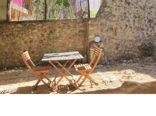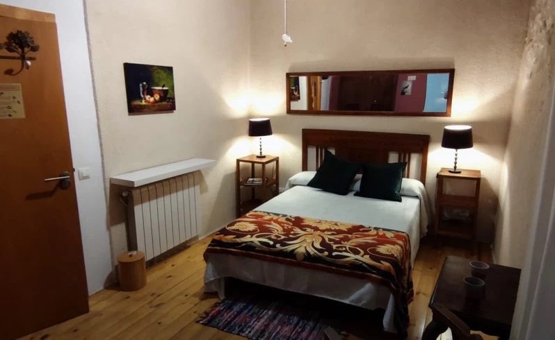 En el patio podrás disfrutar del cielo y el aire libre en un ambiente íntimo y acogedor. Para tu comodidad hemos dispuesto dos mesas y sillas de madera estilo rústico . Al final está el cuarto de pellet para recogerte en casa a una temperatura adecuada al clima.