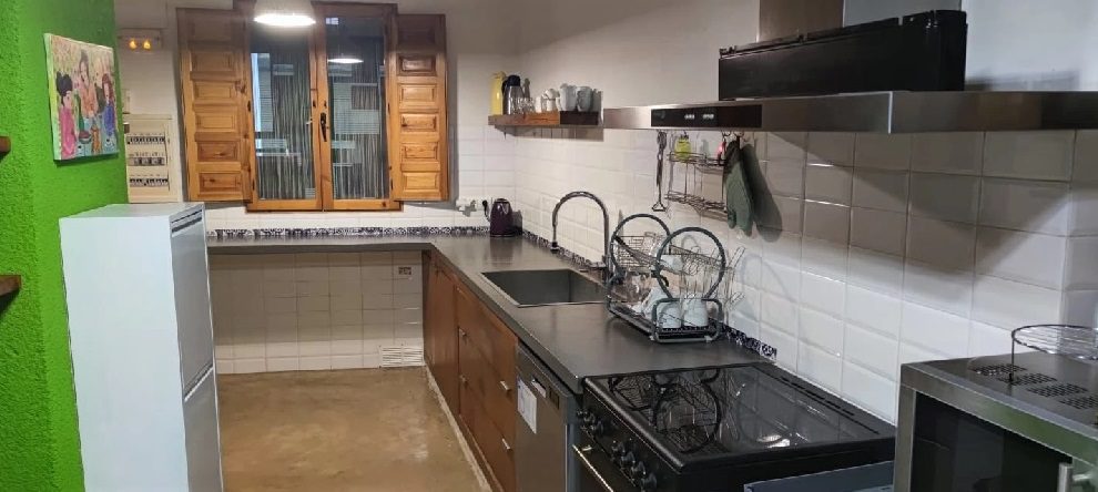 La cocina tiene dos entradas, es muy amplia y cuenta con todos los enseres y electrodomésticos propios de la vida moderna: cocina con horno, microondas, lavadora, secadora, lavavajillas, cafetera, hervidores de agua, exprimidora, etc. Es cálida y, te aseguramos que ¡te entran ganas de cocinar!