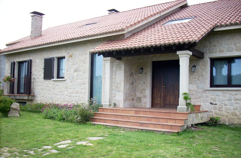 Es una tradicional casa de piedra con un gran porche de madera que mira hacia la Ría de Arousa y a la Sierra del Barbanza.