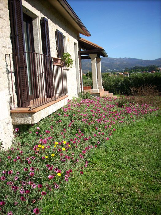 La casa cuenta con un gran jardín cerrado (2000 m²) rodeado de setos y de hortensias, lavanda, malva…, con árboles frutales y ornamentales y zona de aparcamiento, desde el que podrá disfrutar de las espectaculares puestas de sol sobre la ría.