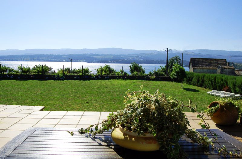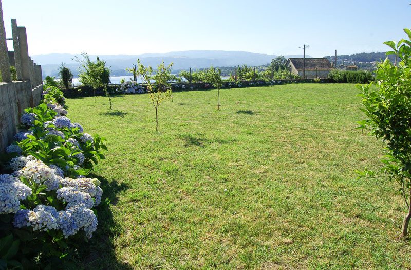La casa cuenta con un gran jardín cerrado (2000 m²) rodeado de setos  y de hortensias, lavanda, malva…, con árboles frutales y ornamentales y zona de aparcamiento, desde el que podrá disfrutar de las espectaculares puestas de sol sobre la ría.