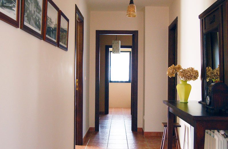 Dispone de 5 habitaciones dobles, una de ellas, que ocupa la antigua cocina de la casa, conserva la antigua lareira. Hay 3 con cama de matrimonio en la primera planta y las otras 2 en el ático, 1 con cama de matrimonio y 1 con dos camas; 4 baños (uno en el ático, uno en la primera planta, uno en la planta baja y otro en la sala de juegos), cocina completamente equipada; comedor; un salón de lectura; un salón con chimenea; gran comedor rústico (60 m²) con lareira, horno de piedra-barbacoa y zona de juegos. La casa cuenta con un gran jardín cercado (1500 m²), con espectaculares vistas a la Ría de Arousa y a la Sierra del Barbanza, hórreo, lavadero, árboles frutales y ornamentales, viña y un petroglifo (gravado de más de 4000 años). Está rodeado de hortensias y podrá disfrutar de los aromas de la lavanda, de la hierba luisa, de la malva, del romero y contemplar las espectaculares puestas de sol tras el Barbanza.