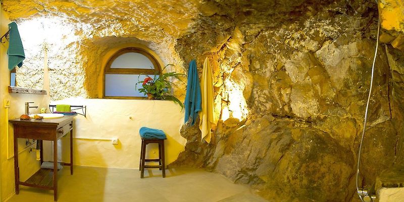 Su rehabilitación se hizo respetando dichas características, resaltando el baño, situado en la cueva antigua, cuyas piezas se mimetizan entre las piedras.
