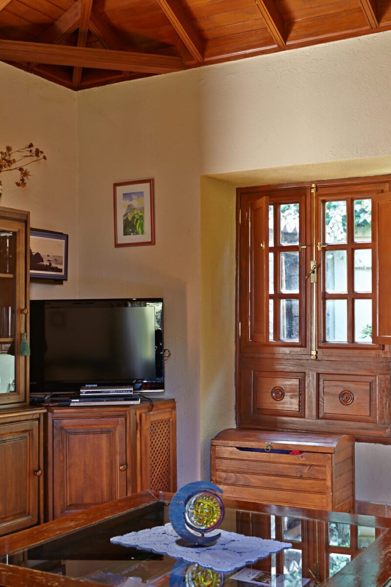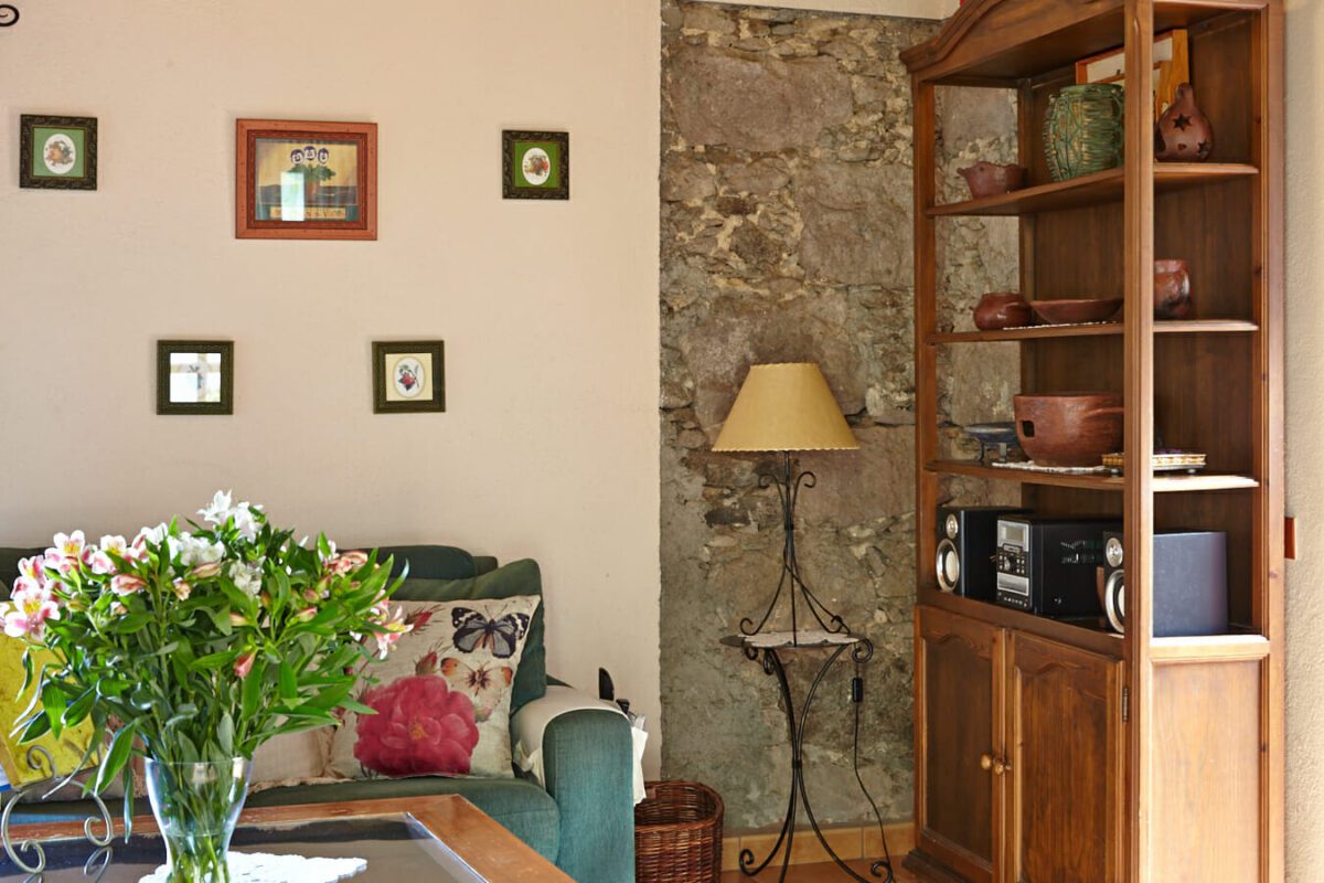El mobiliario es de madera con un diseño rústico. En el aspecto decorativo habría que destacar la colección de cerámica tradicional, algunos de los cuadros pintados por artistas locales, así como mesas jarrones, alfombras, cortinas y lámparas de cuidada elección. Los dormitorios y el salón disponen de amplia luz natural y vistas al Roque Cano y al Valle agrícola de Ingenio.