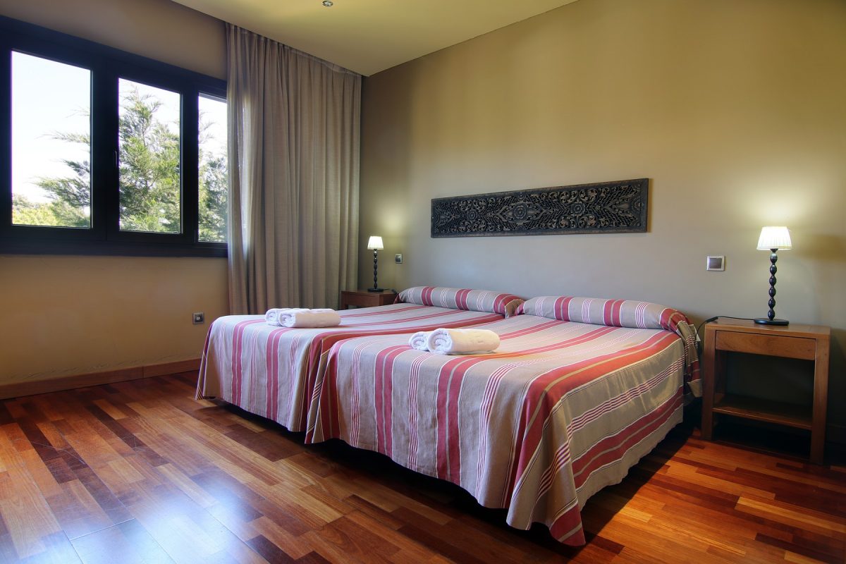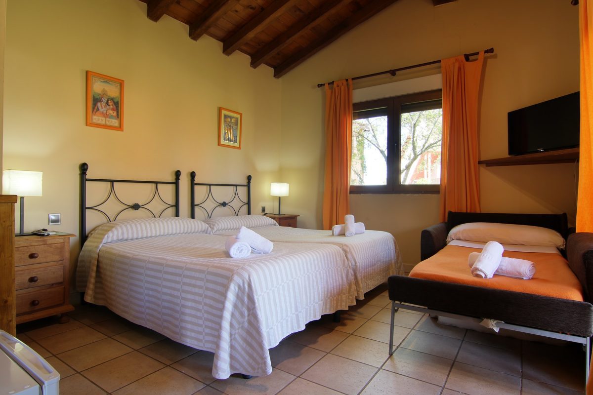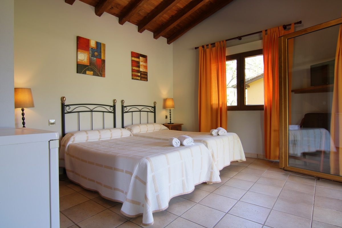 • 23 Bungalows de planta baja con porche individual, distribuidos por sus jardines y un edificio principal con 13 Habitaciones, todo ello teniendo en cuenta camas supletorias, tiene una capacidad para 103 pax.ul>