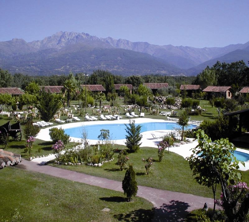 Este complejo hotelero se encuentra en una superficie ajardinada de 15.000 mt, con maravillosas vista al Pico Almanzor en la sierra de Gredos y junto al Pantano Rosarito.