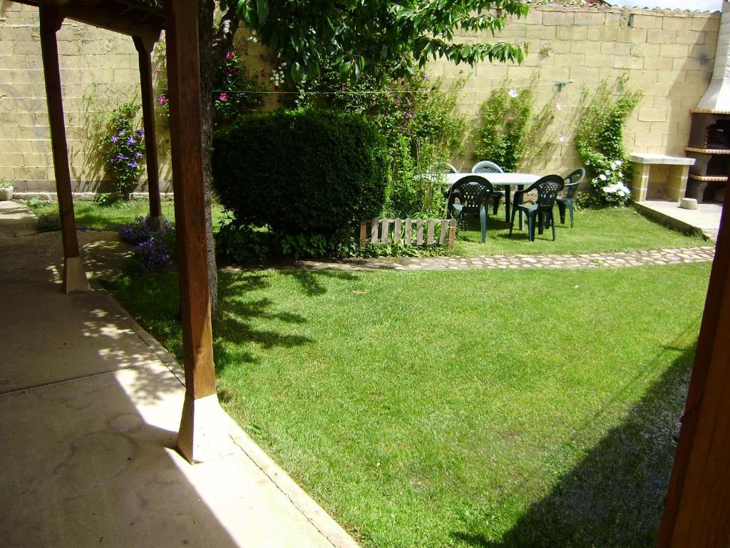 Un gran patio da acceso a la casa y al jardín que dispone de porche, barbacoa y demás mobiliario.