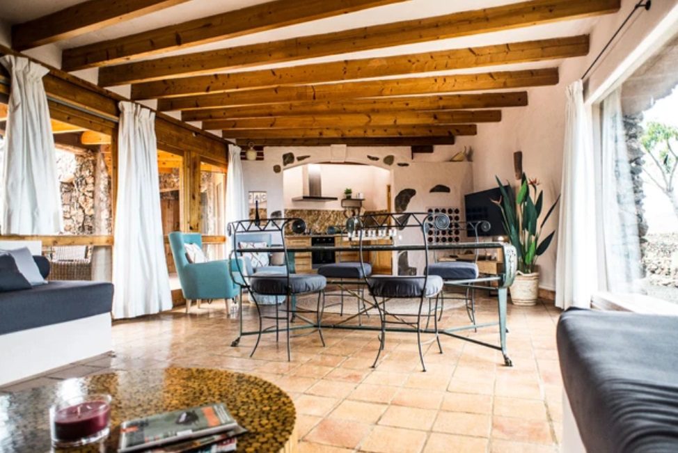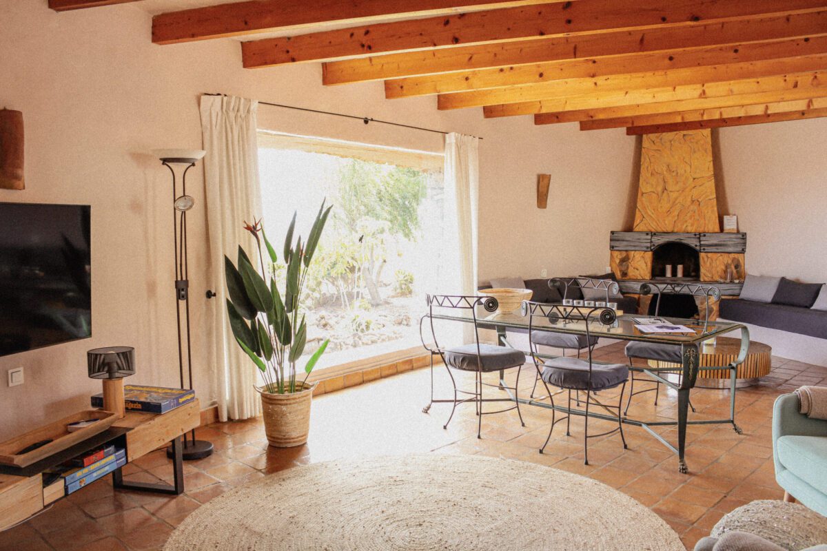 La villa recientemente renovada se encuentra en el original pueblo canario de Los Riquetes, a 15 minutos de la animada ciudad portuaria de Corralejo. Se puede llegar a la finca desde el aeropuerto en 35 minutos (aprox. 39 km). Las «Dunas de Corralejo» es la playa más cercana, a la que se puede llegar en 20 minutos en coche. La casa de vacaciones se encuentra a 10 minutos del pueblo canario de Villaverde, donde encontrará el supermercado, la panadería y los restaurantes más cercanos. La ciudad surfera de Lajares está a unos 14 minutos y también ofrece numerosos cafés, bares y restaurantes. Desde allí también se llega en pocos minutos a Majanicho, un antiguo pueblo de pescadores donde el tiempo parece haberse detenido. Sólo los surfistas le recuerdan que ya no está en el siglo XVIII. Tales joyas se han vuelto realmente raras en nuestro planeta. Desde Majanicho, puede hacer una parada en El Cotillo y disfrutar de la impresionante puesta de sol en un bonito restaurante, en un bar en la azotea o, con los pies en la arena, en un acogedor chiringuito junto al mar.