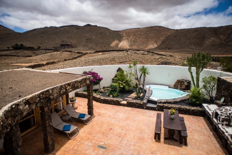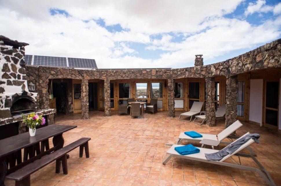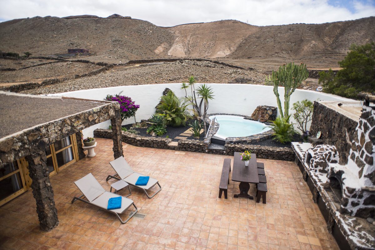 Esta villa vacacional se encuentra en una ubicación única y de ensueño en el norte de Fuerteventura, en el pueblo de Los Risquetes. La zona residencial, muy tranquila, consta de solo 24 casas, que fueron construidas casi exclusivamente con las piedras de lava natural de Fuerteventura. Para que las piedras de lava natural se utilizaran para la construcción de casas, tenían que ser laboriosamente talladas pieza por pieza. Este tipo de casa crea un ambiente de vida muy especial y representa el estilo de vida canario. Si quieres disfrutar de este ambiente singular con absoluta tranquilidad en tus vacaciones, entonces esta finca es el lugar adecuado. Todo el mundo quiere disfrutar de su vida sin ser molestado en el silencio de la naturaleza. Cualquier estrés se queda en la puerta.