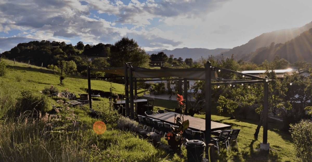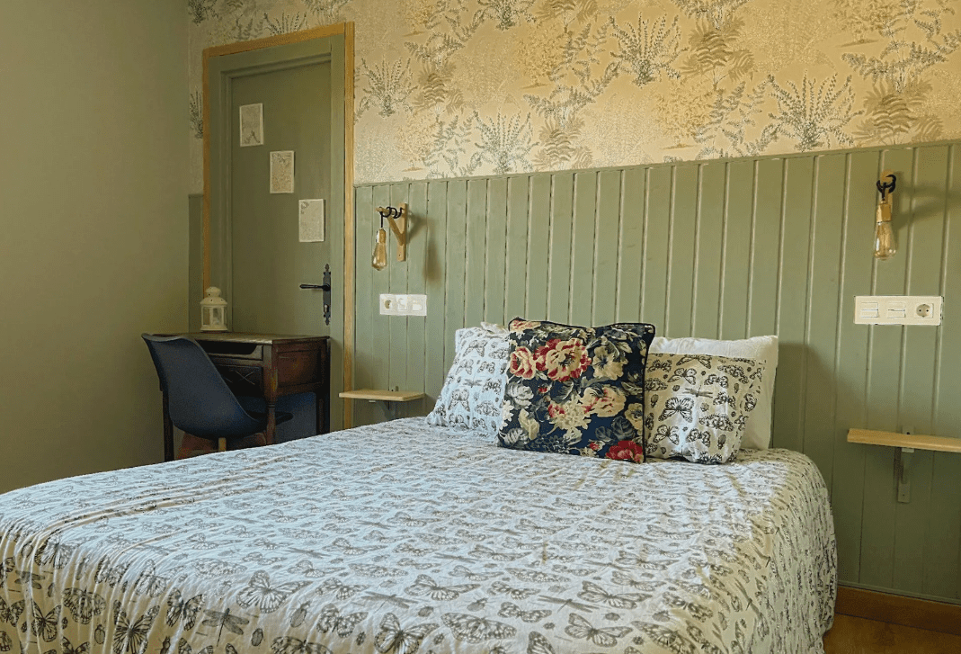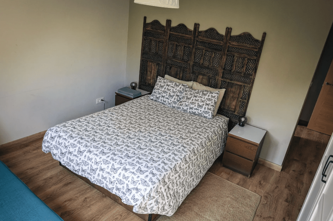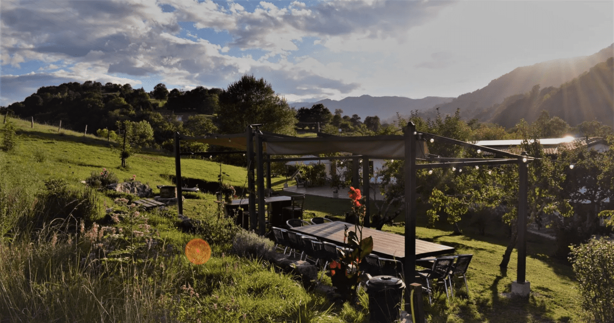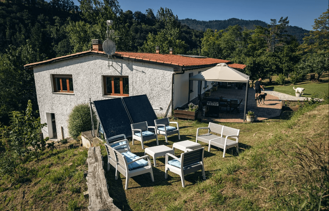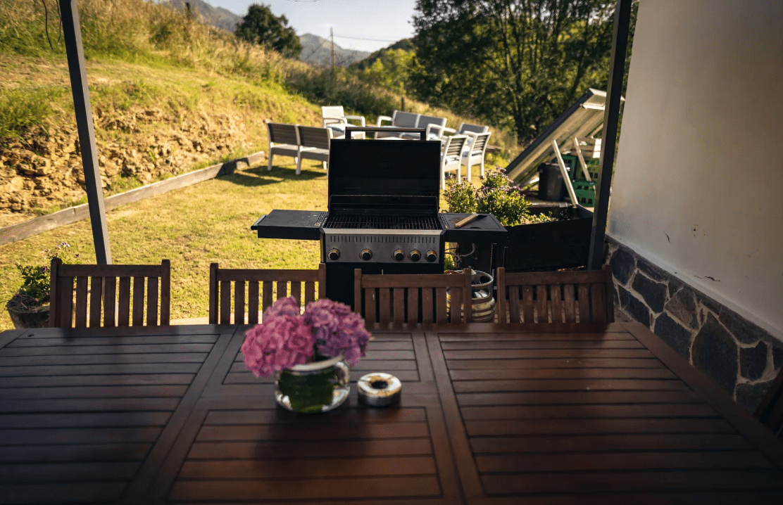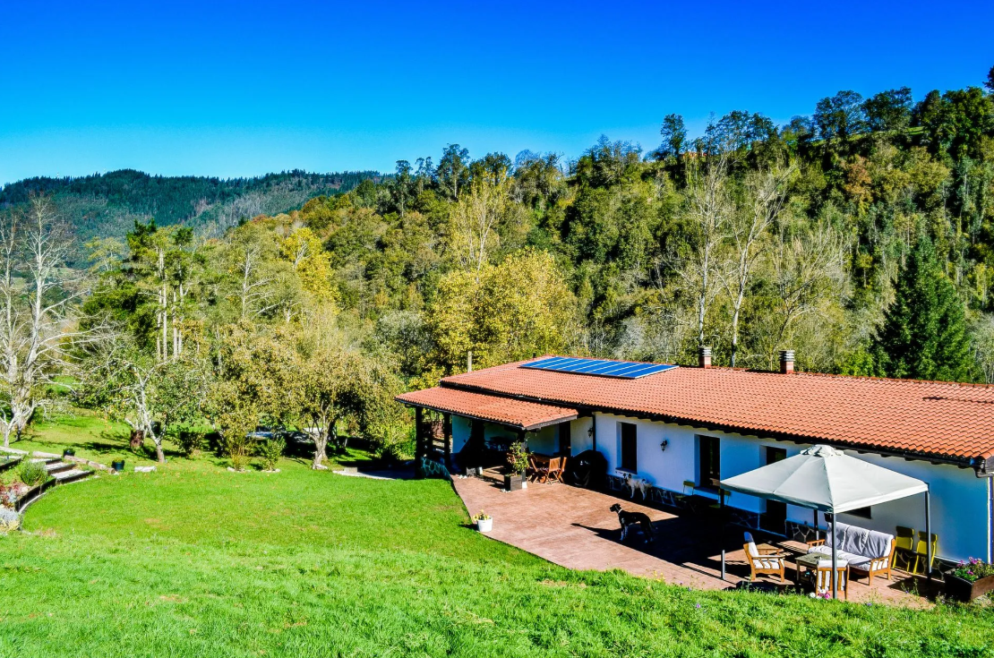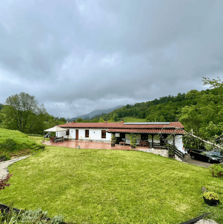 La finca tiene parking con espacio para seis o siete coches. La zona exterior tiene un bonito jardín con vistas al monte donde muchas veces habrá vacas o caballos. Está llena de árboles frutales, como manzanos, avellanos, un peral, arándanos… No dudéis en coger sus frutos en temporada. Muchos manzanos son sidreros por los que sus manzanas no son las más dulces, pero están muy buenas y son totalmente ecológicas.