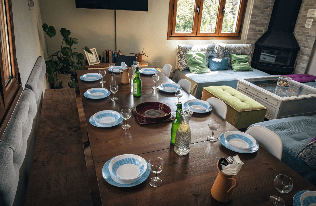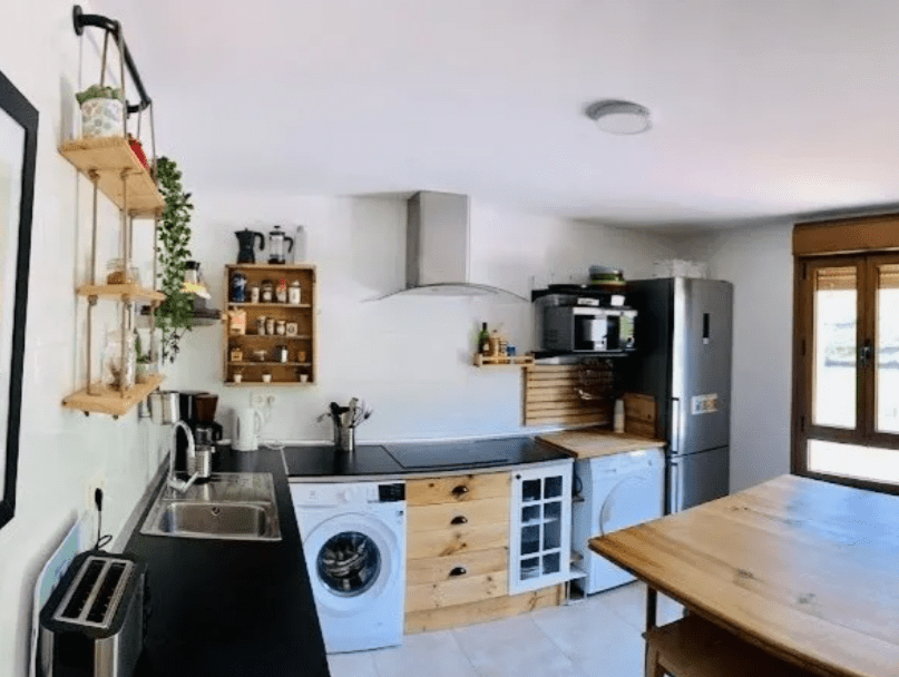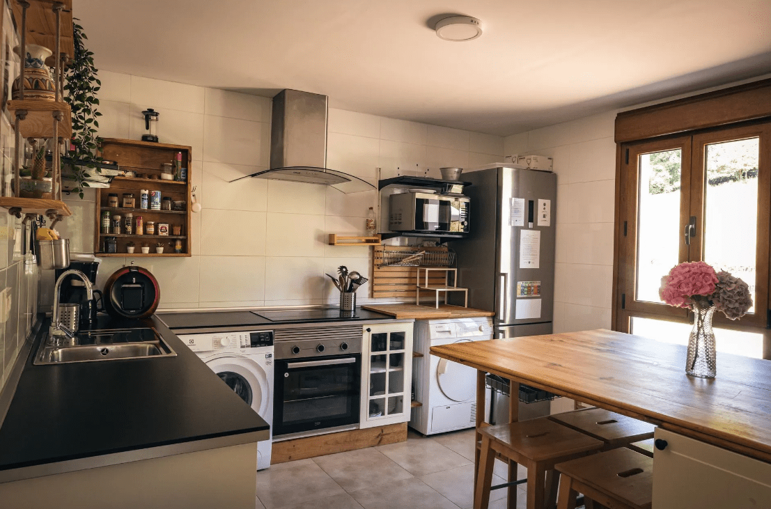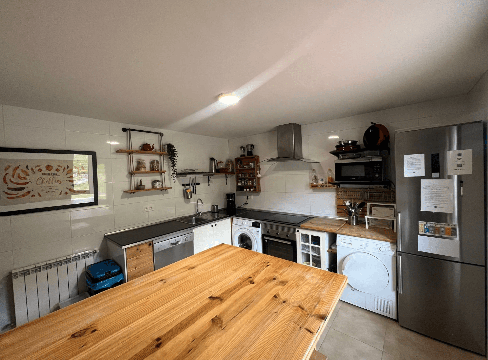 Hay una parte de la casa en la que las estancias comunes como salón-comedor y cocina son más amplias, por lo que aconsejamos su uso en caso de que os queráis juntar dentro de casa, aunque la verdad es que con el entorno que tenemos y las zonas exteriores, lo que más apetece es siempre estar fuera.