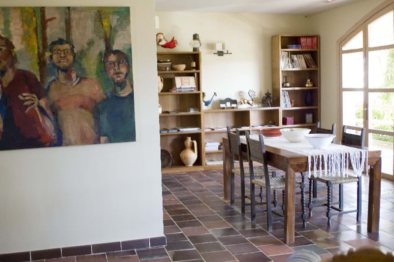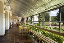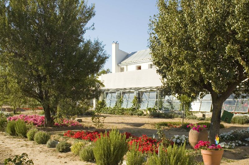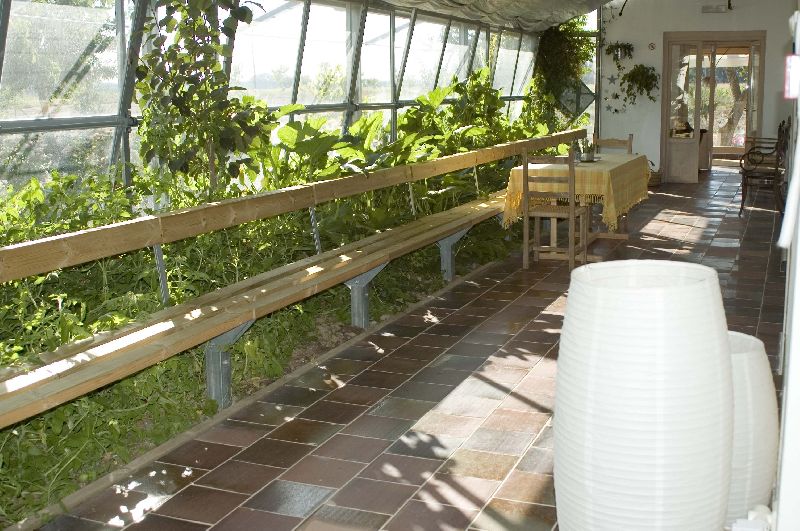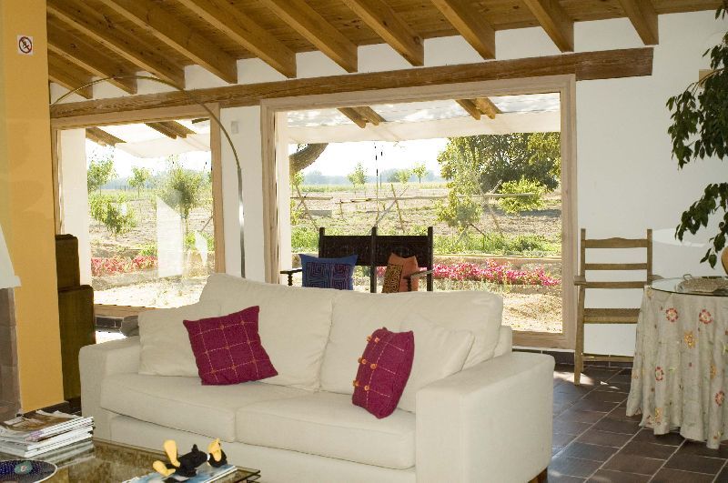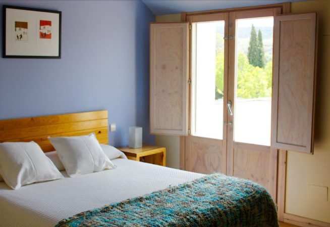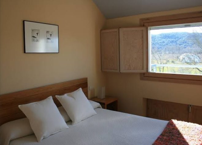 dobles con baño (una de ellas adaptada a personas con diversidad funcional), un gran invernadero, salón con chimenea, una sala de estar/biblioteca (televisión, juegos, lectura, etc.), comedor, cocina, jardín, huerto ecológico y un amplio porche. La casa está rodeada de un espacio de más de 4.000 m2, con piscina y geoda. El resultado es un edificio acogedor, espacioso y tranquilo