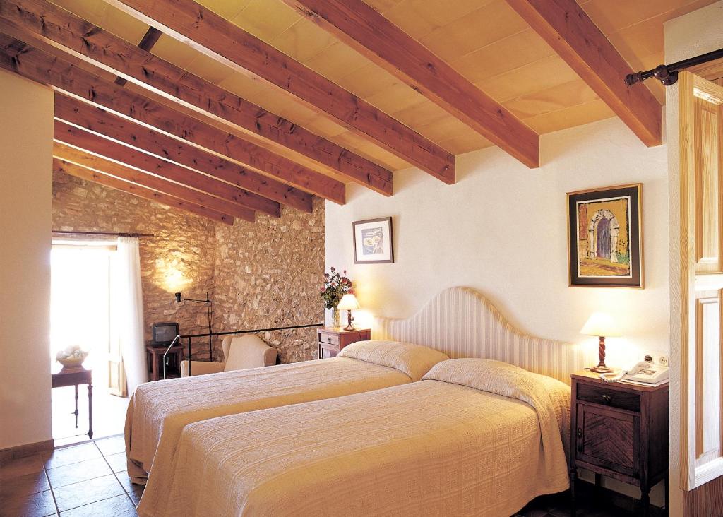 Las habitaciones del Sa Carrotja, solo para adultos, combinan paredes de piedra y vigas de madera. Presentan interiores luminosos con muebles de época e incluyen toallas de playa. Algunas tienen terraza privada.