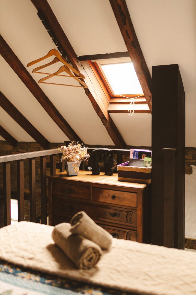 Nuestra cabaña más pequeña, con magníficas vistas al Valle de Turón desde su terraza privada, que cuenta con mobiliario exterior, tumbonas y barbacoa. En el interior dispone de dormitorio en zona abuhardillada, baño, cocina-salón y su estupenda chimenea de leña.