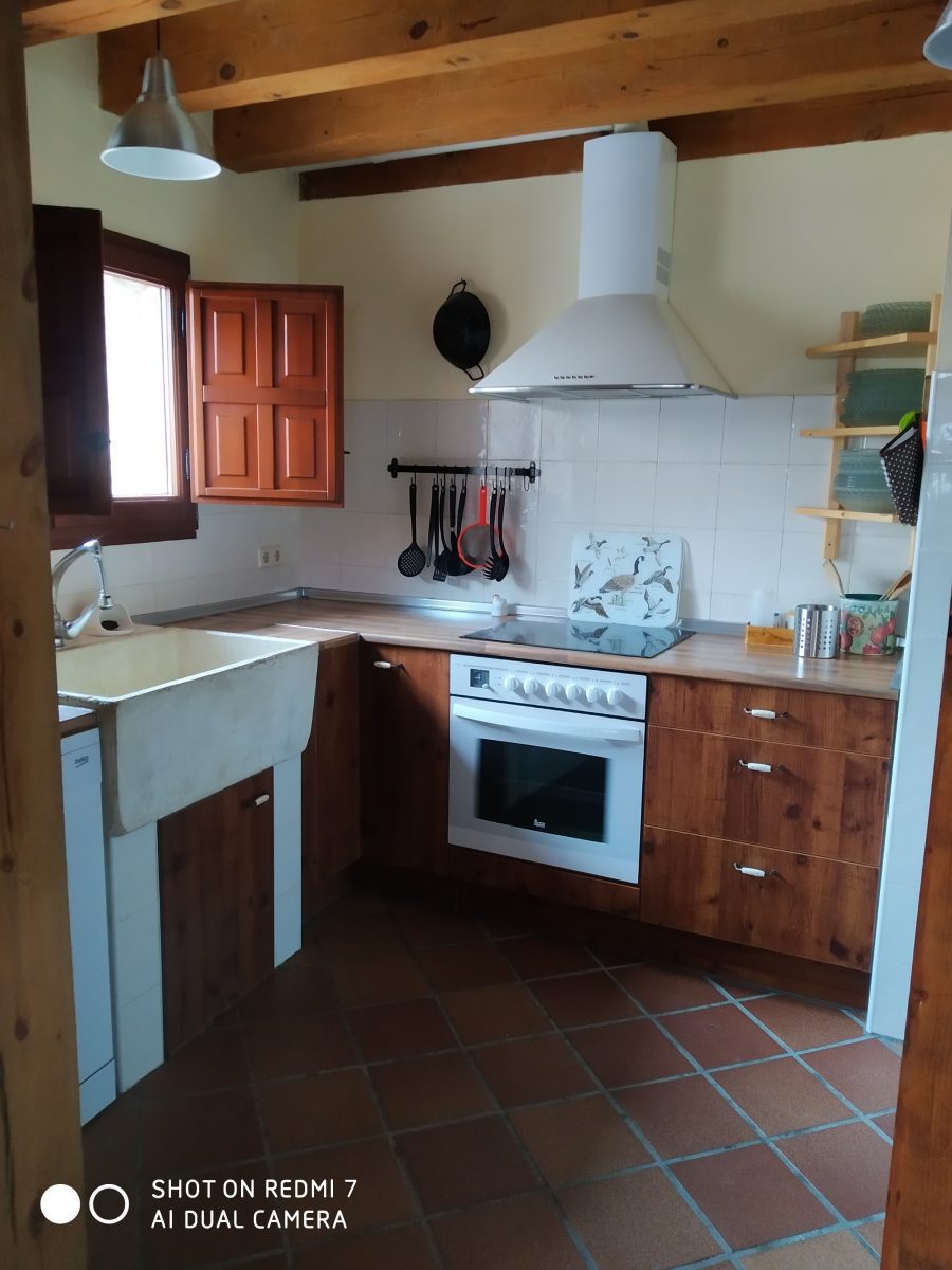 En la planta baja se encuentra el salón/comedor con chimenea, cocina abierta totalmente equipada, baño completo con ducha y dos dormitorios con salida directa al patio: uno con cama de matrimonio y otro con dos camas individuales.