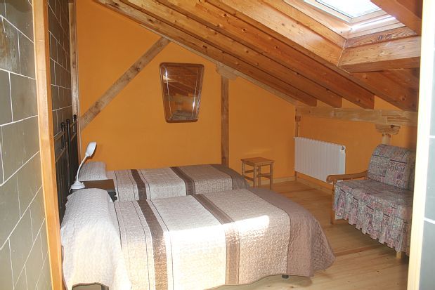 Casa de piedra y tejado de pizarra del pueblo. En la actualidad la casa dispone de tres plantas, siendo una abuhardillada. Gran salón con dos grandes ventanales, amplia mesa de madera de 14 comensales y sofás para descansar, ver la tele y disfrutar de la chimenea de leña. Cocina que no la falta detalle, con un fregadero de porcelana. Dos habitaciones dobles y dos de matrimonio, todas con duchas su estilo y decoración diferente. Patio con amplio porche y barbacoa.