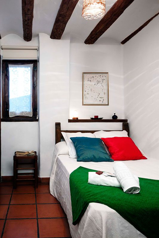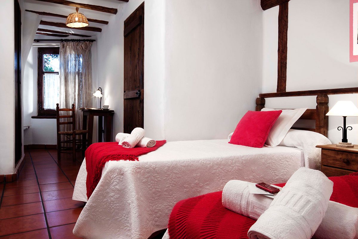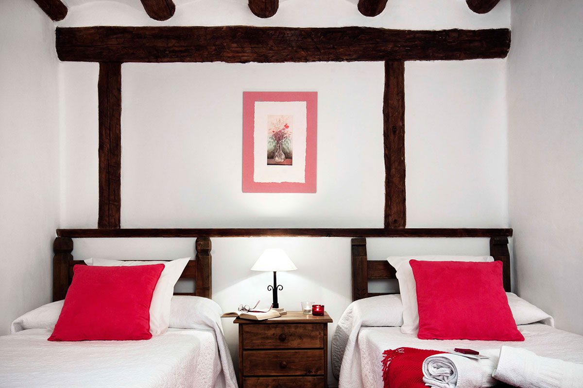 ![]() | EL ROSAL: Habitación doble, con dos camas de 90cm., de distribución recogida en la zona del dormitorio, y saloncito de estar junto a la amplia ventana que da al pueblo y sobre el patio que da paso a la puerta de entrada de la casa. Por su distribución, dos espacios muy definidos, es una habitación amplia y cómoda ideal para ser la habitacion de los niños, o para los que prefieren dormir solos, invita a la lectura y al descanso |
