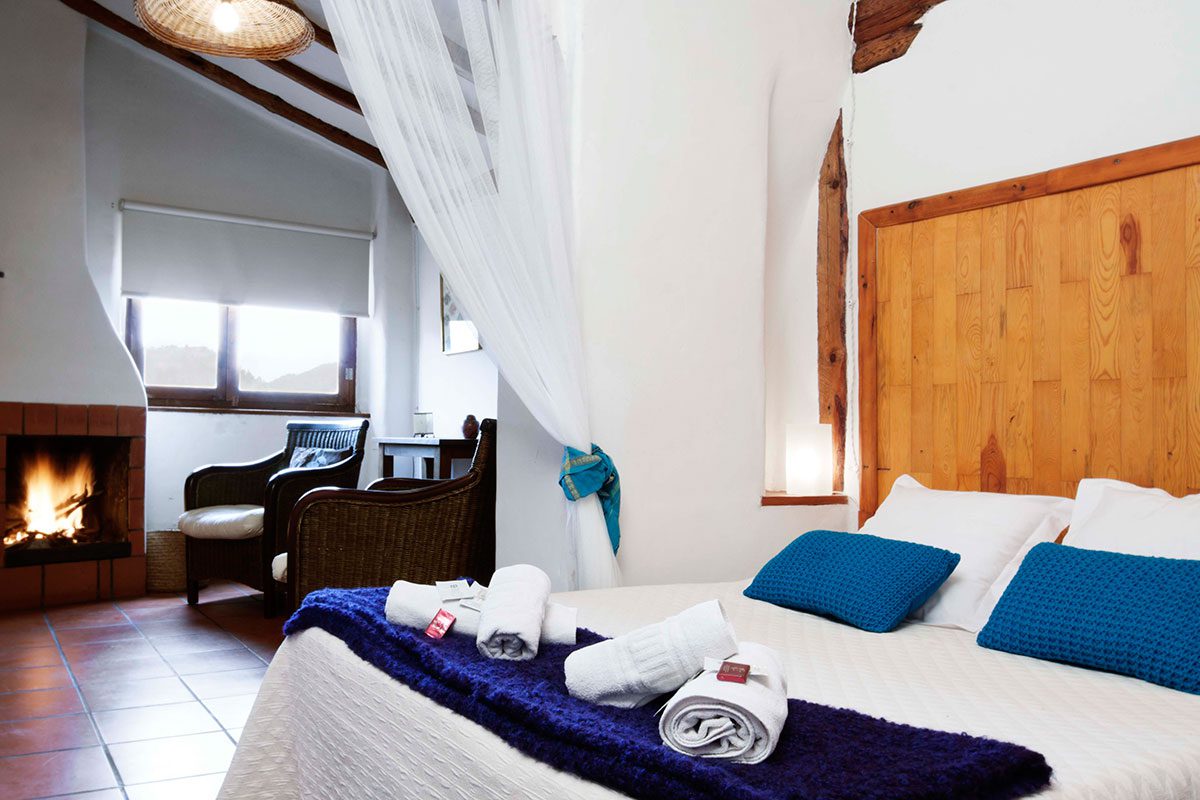 ![]() | EL PALOMAR: Espaciosa habitación abuhardillada, con baño y cama de matrimonio de 1,35m., compuesta de alcoba y sala de estar con chimenea , en la misma pieza. Una ventana panorámica orientada a la salida del sol, nos brinda la oportunidad de disfrutar de la maravillosa vista de la vega, los montes universales y el azul del cielo serrano, hasta donde la vista alcance. Ideal para estar en pareja y disfrutar de una estancia romantica, sosegada y apacible. |