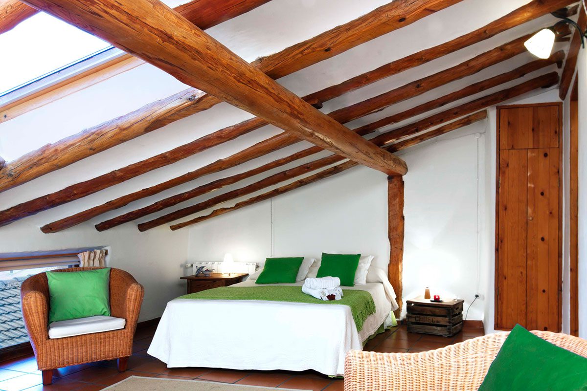 En la primera planta encontramos las habitaciones dobles y la individual, y en la segunda planta están las 2 habitaciones abuhardilladas muy espaciosas con chimenea y salón.