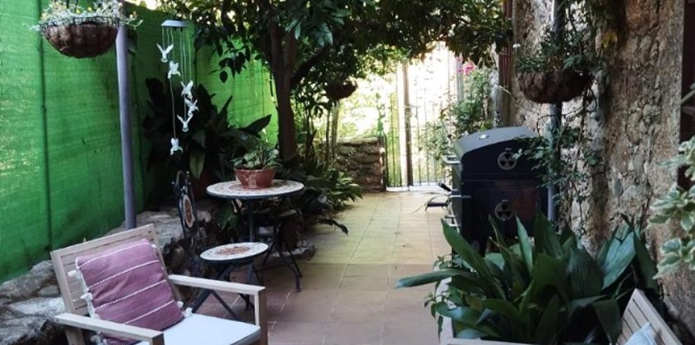 Patio exterior con barbacoa y salida directa al rio JERTE.