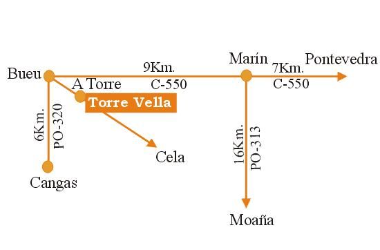 Torre Vella es un complejo de 2 casas, CASA TORRE VELLA de 6 habitaciones, y CASA BAHIA de 2 habitaciones. En ellas se combina el aspecto rústico de la época con las comodidades actuales.